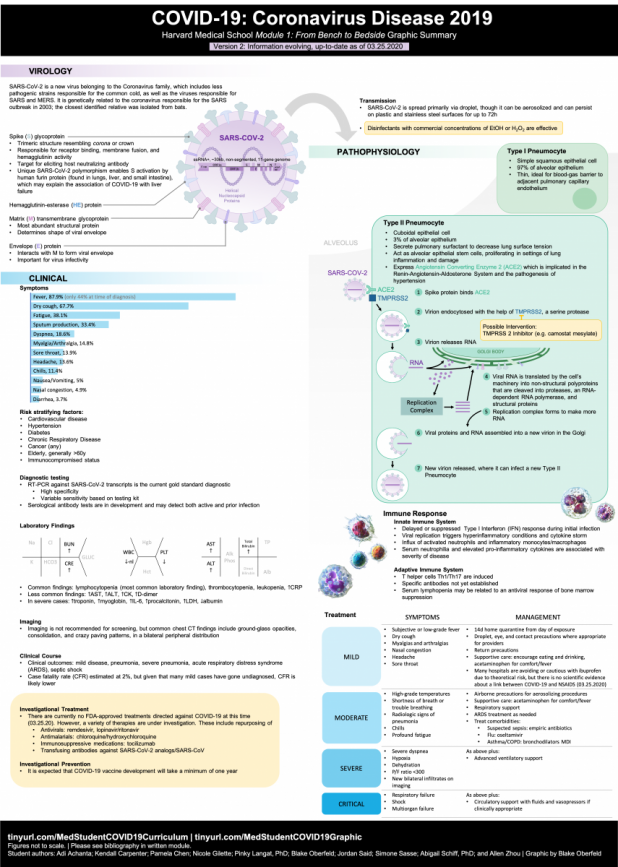 A team of students from Harvard Medical School, including a number of HST MD and MD-PhD students, responded quickly to organize grassroots efforts against the Covid-19 pandemic. They identified two main opportunities for impact: activism and education. Their activism effort involves coordinating opportunities for students to provide on-the-ground help in both the community and clinical settings. Education efforts have resulted in a public-facing social media campaign (see @FutureMDvsCOVID) and in the rapid development of a free curriculum for anyone in the biomedical community interested in learning about Covid-19.